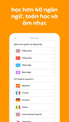 Khám phá thế giới ngôn ngữ cùng Duolingo, nền tảng học tập được hàng trăm triệu người tin dùng và phát triển bởi đội ngũ chuyên gia ngôn ngữ hàng đầu. Cho dù bạn đang chuẩn bị cho chuyến phiêu lưu vòng quanh thế giới, nâng cao kiến thức học đường, mở rộng cơ hội nghề nghiệp hay đơn giản là muốn kết nối với những nền văn hóa mới, Duolingo mang đến hành trình làm chủ tiếng Tây Ban Nha, tiếng Pháp, tiếng Hoa, tiếng Anh, tiếng Đức, tiếng Ý và vô số ngôn ngữ khác một cách dễ dàng và hiệu quả. Duolingo biến việc học thành niềm vui, giúp bạn tự tin giao tiếp trong mọi tình huống.