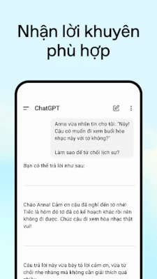 ChatGPT là trợ lý AI thông minh của bạn, cung cấp câu trả lời nhanh chóng và ý tưởng đột phá. Khám phá sự sáng tạo và năng suất mới mọi lúc, mọi nơi, dễ dàng trên thiết bị di động của bạn.