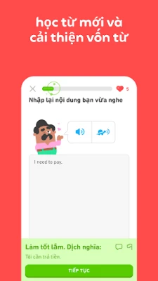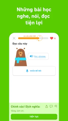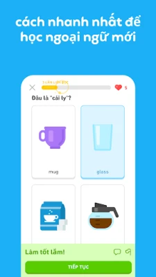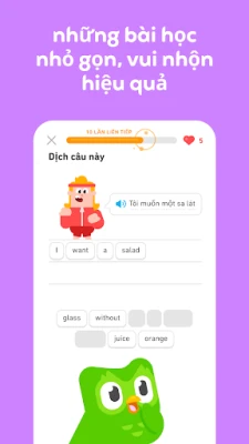 Duolingo là ứng dụng giáo dục hàng đầu giúp bạn học hơn 40 ngôn ngữ một cách vui nhộn và miễn phí. Với các bài học ngắn gọn, bạn sẽ luyện tập kỹ năng nghe, nói, đọc, viết để xây dựng vốn từ vựng và nắm vững ngữ pháp hiệu quả. Khám phá thế giới ngôn ngữ cùng Duolingo.