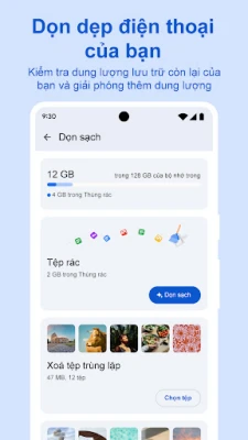 Giải phóng dung lượng thiết bị hiệu quả. Ứng dụng cung cấp các đề xuất dọn dẹp thông minh, giúp bạn dễ dàng loại bỏ tập tin không cần thiết. Giữ cho điện thoại luôn hoạt động mượt mà và tối ưu, đảm bảo không gian lưu trữ luôn đủ dùng.