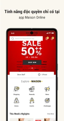 Không chỉ là mua sắm, ứng dụng còn là nơi bạn kết nối và tương tác thông qua các thử thách độc quyền cùng sự kiện hấp dẫn. Tham gia check-in hoặc hoàn thành các hoạt động, bạn sẽ nhận được điểm thưởng bổ sung và vô vàn ưu đãi đặc biệt khác, nâng tầm trải nghiệm thời trang của mình. Đằng sau nền tảng này là Công ty Cổ phần Maison RMI, nhà phân phối hàng đầu với kinh nghiệm gần hai thập kỷ, đã thành công đưa hơn 50 thương hiệu thời trang cao cấp và sang trọng đến với người tiêu dùng Việt Nam, cam kết mang đến giá trị và phong cách đích thực.